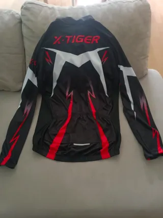 Maillot de ciclismo X-Tiger para hombre con mangas largas. - Diseño en color negro con detalles en rojo y blanco. - Cremallera frontal. - Tejido técnico transpirable.