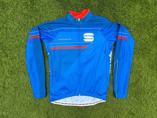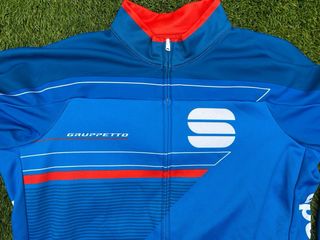 Maillot de ciclismo Sportful de manga larga en color azul. Talla L - Diseño con detalles en rojo y blanco. - Logo de Sportful en el pecho. - Inscripción Gruppetto en la parte frontal. - Inscripción sportful en la manga.