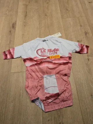 Maillot de ciclismo con diseño de La Rioja Bike Race. - Diseño con montañas y degradado en tonos rosas. - Cremallera frontal completa. - Mangas cortas.