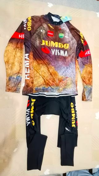 Conjunto de JUMBO VISMA. Ropa de ciclismo para hombre, Maillot de manga larga, pantalones de bicicleta de montaña y carretera. Completamente nuevos a estrenar, son talla XL. JERSEY LARGO CLÁSICO HOMBRE ● Tejido ligero de secado rápido y anti sudor, transpirable ● Tres bolsillos traseros reforzados (Tiras reflectantes) ● Cara lateral y espalda de malla para una mayor transpirabilidad ● Corte estéreo ergonómico ● Diseño de costura del puño, mejor estiramiento del brazo, SHORTS PRO RACING BIB HOMBRE ● Tejido elástico de 4 vías de punto denso para estiramiento de apoyo. ++Mas modelos disponibles++.