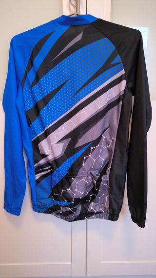 Maillot de ciclismo nuevo de hombre de manga larga. Tejido Coolmax muy transpirable. Aunque marca una talla XL, talla bastante pequeño. Sería un equivalente a una talla M (ver medidas en las fotos 4 y 5).