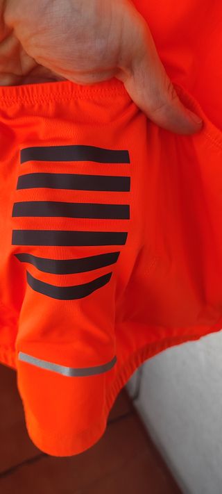 MAILLOT MANGA CORTA NARANJA CON BANDAS REFLECTANTES Y BUEN ACABADO. ES PARA TALLA ENTRE M Y XL. LICRA BASTANTE FLEXIBLE Y MANGA 3/4 SOLO ATIENDO PREGUNTAS SERIAS