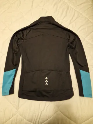 Maillot de ciclismo de manga larga de la marca Triban. - Talla M - Marca Triban (Decathlon) - Color azul marino y turquesa - Cremallera frontal completa. - Cuello alto. - 3 bolsillos traseros + 2 con cremallera (1 en la espalda y 1 en el lateral). - Banda elástica en el bajo antideslizante. - Maillot de invierno