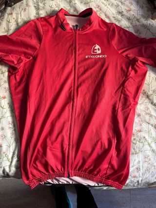 Maillot de ciclismo Etxeondo de color rojo. Ideal para rutas en bicicleta. - Cremallera completa. - Logo de Etxeondo en el pecho.