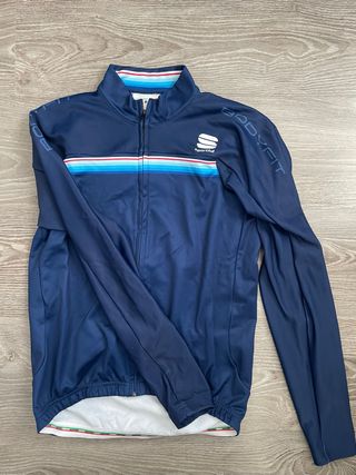 Maillot de invierno Sportful Bodyfit en color azul. - Diseño con rayas de colores en el pecho. - Cuello alto con detalles de rayas. - Logo de Sportful en el pecho. - Inscripción BODYFIT en la manga.