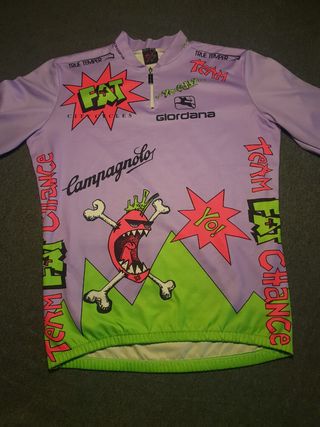 Maillot ciclismo mitico de los 90s team fat chance marca mitica desde los inicios. Completamente nuevo unico al ser manga larga rarisisimo de encontrar .