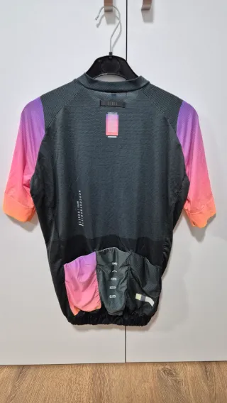 Patrón muy ajustado para efecto segunda piel Tejido de rejilla de alta transpiración Mangas con longitud ampliada y corte ergonómico Cremallera con tirador semiautomático 3 bolsillos traseros aerodinámicos Cintura minimalista siliconada Detalles reflectantes Peso: 115 g (M) UPF: 40 Temperatura de Uso: 25- 38 ºC Fitting: ULTRA FIT Estado: Nuevo