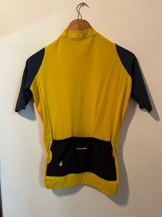 Maillot Etxeondo Alde. Color Amarillo/Mostaza y Azul. Gama Pro en Talla M. Ciclismo, ciclisme, Cycling, Chubasquero, bike, windstopper, Maillot, culotte, térmica, carretera, mto, gravel, enduro, bikepacking, cicloturismo, transpirable, impermeable, goretex, reflectante, cortaviento, merino, invierno, entretiempo, Rapha, castelli, assos, scott, maap, pas normal studios, endura, Van Rysel, velocio, gobik, santini, sporttul, specialized, mavic, ekol, ale, biehler, x-bionic, northwave, gore wear, trek, 7mesh, etxeondo, spiuk, siroko, mobel, tactic, gsport, Q36.5, PNS