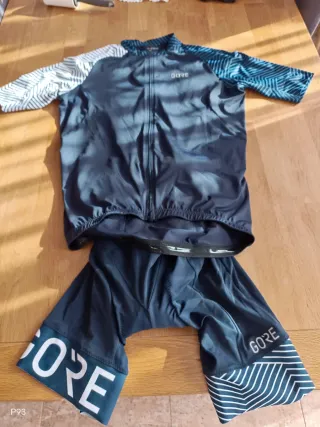 Conjunto de ciclismo GORE compuesto por maillot y culote. - Talla M - Maillot de manga corta con cremallera completa. - Culote con tirantes y badana. - Diseño moderno con detalles gráficos. - Solo tiene 2 puestas
