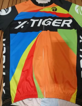 Conjunto de ropa de ciclismo de la marca X-Tiger. - Maillot de manga corta con cremallera frontal. - Culotte con tirantes y badana. - Diseño en color rojo, negro y azul. - Tejido de poliéster. Se vende por 20€ negociables. Interesados escribir por WhatsApp al 669887458
