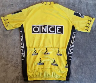 Maillot de ciclismo con el icónico diseño del equipo ONCE de los años 90. Ideal colección o pruebas retro. - Original Etxeondo - Logo de ONCE en el pecho y mangas. - Gráfico distintivo en el frontal. - Cremallera frontal.