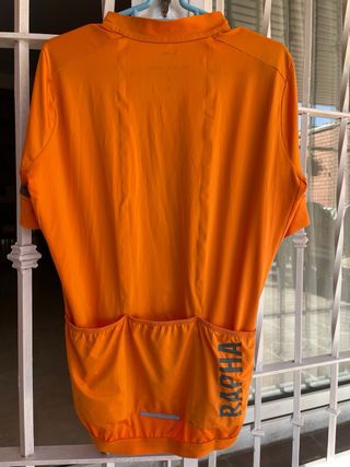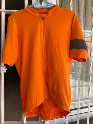 Maillot de ciclismo de color naranja brillante, ideal para visibilidad. - Cremallera frontal completa. - Bolsillo con cremallera - Talla L - Rapha original