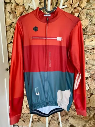 Se encuetra en muy buen estado a pesar del uso, tan solo tiene un pequeño enganchon en la manga izquierda (última foto) pero nada grave. Lo vendo porque abriga demasiado para mi gusto, no suelo madrugar y prefiero salir con un maillot mas fino y chaleco. En las fotos se pueden ver las medidas.