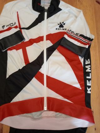 Conjunto de maillot y culotte de la marca Kelme. Usado unas cinco salidas. Sistema para unir el culotte al maillot tipo mono.