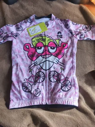 Maillot Ciclismo Infantil Rosa Dibujos. Talla 4