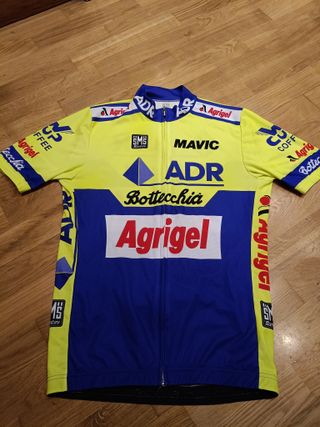 Maillot ciclismo del mítico equipo ciclista ADR-AGRIGEL, año 1989, con el corredor americano Greg Lemond como ganador del Tour de Francia con la distancia más corta en la historia de la carrera, tan solo 8 segundos... Es un SMS Santini, talla XL, medidas en las fotos. Perfecto.