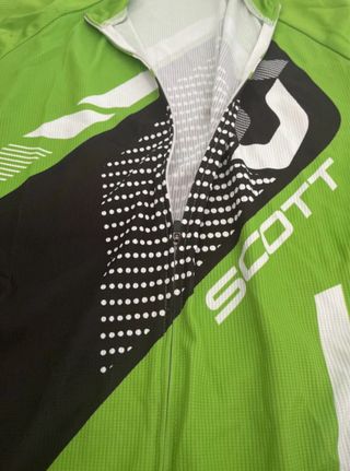 Maillot de ciclismo de la marca Scott en color verde y talla XXL. Diseñado para la práctica deportiva. - Cremallera frontal completa. - Tejido ligero y transpirable. - Diseño moderno con detalles gráficos.