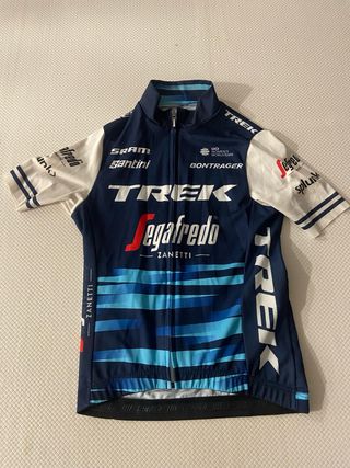 Vendo maillot trek sagafredo en perfecto estado talla xs sin uso. Colores: Azul marino con franjas en tonos azules claros. • Patrocinadores visibles: • Trek • Segafredo Zanetti • Bontrager • SRAM • Splunk • Materiales típicos del modelo: • Tejidos ligeros y transpirables. • Paneles laterales microperforados. • Cremallera completa. • Banda elástica inferior con grip de silicona.