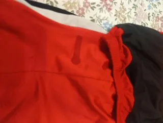 - Color rojo y granate. - Detalles reflectantes. - Dos pequeños bolsillos con cremallera y tres abiertos. - Nuevo. Sin estrenar, por lo que no puedo dar detalles sobre su funcionalidad. -Goma en la parte inferior para que no mueva con el movimiento.