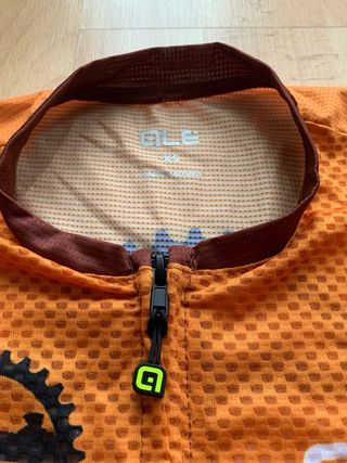 Maillot de ciclismo Ale con un diseño degradado en tonos naranjas y marrones. Ideal para entrenamientos o carreras. - Cremallera frontal completa. - Mangas cortas. - Tres bolsillos traseros. - Tejido ligero y transpirable. NO LEER Castelli Gobik GSport MAAP PAS Pas Normal Studios Etxeondo Ale Santini Pissei Assos Bioracer Endura Giro Hiru Poc Scott Shimano Spiuk