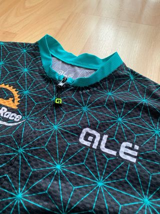 Maillot de ciclismo Ale con diseño exclusivo Far West Race. - Color principal negro con detalles en verde turquesa. - Estampado geométrico en la parte frontal y mangas. - Tres bolsillos traseros. - Cremallera frontal completa. NO LEER Castelli Gobik GSport MAAP PAS Pas Normal Studios Etxeondo Ale Santini Pissei Assos Bioracer Endura Giro Hiru Poc Scott Shimano Spiuk