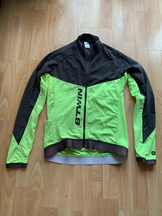 Maillot de ciclismo Btwin de manga larga en talla S. Diseño bicolor en gris oscuro y verde lima. - Cremallera frontal completa. - Puños elásticos. - Bajo con banda de silicona antideslizante. - Tres bolsillos traseros. NO LEER Castelli Gobik GSport MAAP PAS Pas Normal Studios Etxeondo Ale Santini Pissei Assos Bioracer Endura Giro Hiru Poc Scott Shimano Spiuk Siroko Van Rysel Rockrider