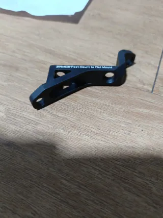 Adaptador para pinza de freno de disco. - Convierte montaje Post Mount a Flat Mount. - Fabricado en aluminio negro.