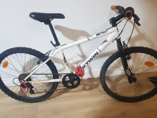 Bicicleta Btwin Rockrider 300 en color blanco. Ideal para iniciarse en el ciclismo de montaña.Ha estado en un trastero. Funciona todo bien . - Cuadro de aluminio. - Suspension rigida - Frenos V-brake. - Ruedas de 24 pulgadas.