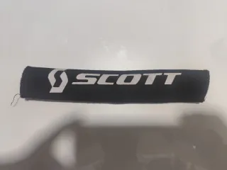 Salvacadenas de neopreno para bicicleta con logo de Scott, con belcro - Material: Neopreno. - Color: Negro con logo blanco.