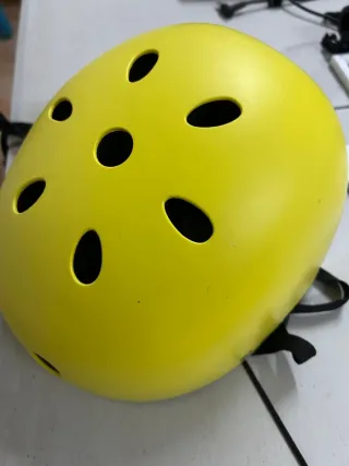 Casco de protección para niños en color amarillo brillante. Diseñado para ofrecer seguridad y comodidad. - Diseño con múltiples ventilaciones. - Correas ajustables para un ajuste seguro. Para ir en bicicleta o patinete