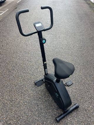 Bicicleta estática digital de la marca Domyos. Ideal para entrenamientos en casa. - Diseño moderno en color negro. - Pantalla digital integrada. - Asiento ajustable. //Esta perfecta, cuanta con panela digital km/Tiempo/kcal/carga// ❌NO SE ENVIA!!!