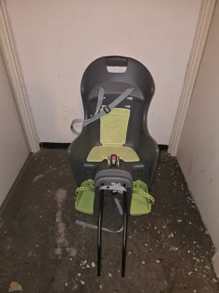 Silla para bicicleta diseñada para transportar niños de forma segura. - Estructura de plástico resistente. - Acolchado rojo para mayor comodidad. - Arnés de seguridad de 3 puntos. - Reposapiés integrados.