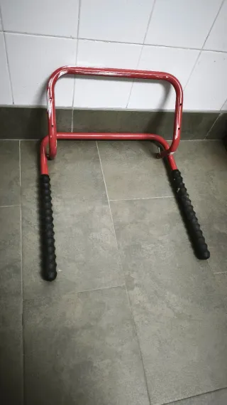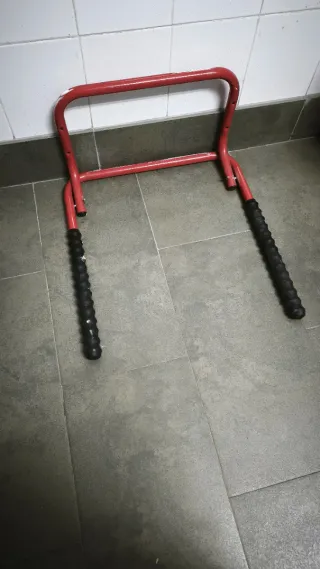 Soporte de metal con mangos de goma negros. 500anchox550largox300alto - Color rojo. - Mangos de goma negros.