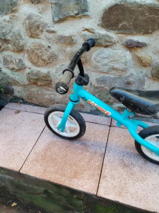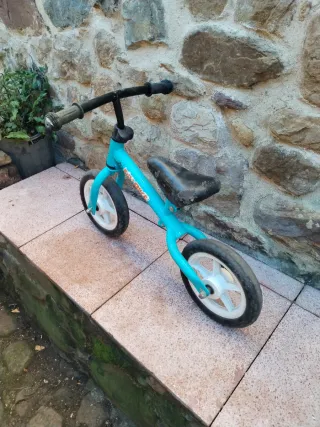 Bicicleta de equilibrio de color azul, ideal para que los más pequeños aprendan a montar. - Marco de metal resistente. - Ruedas blancas. - Asiento negro.