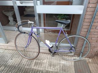 Bicicleta de carretera vintage marca Cosmos, modelo de 1979. Un clásico para coleccionistas o amantes del ciclismo retro. - Cuadro de color morado. - Manillar de carretera. - Portabidón incluido.
