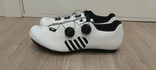 Zapatillas de ciclismo Siroko Infinity en color blanco y talla 47. Diseñadas para ofrecer comodidad y rendimiento. Nunca usadas, vendo por error en la talla, al ser un regalo se me paso el plazo de devolucion - Doble cierre BOA. - Suela carbono de alta rigidez - Diseño transpirable.