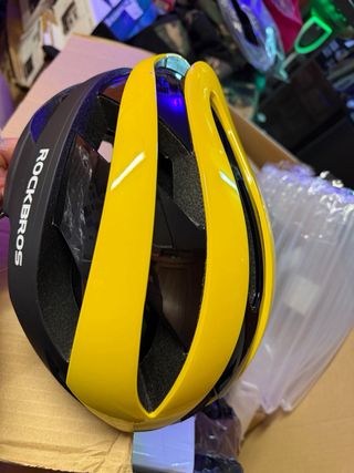 Casco de ciclismo Rockbros en color amarillo y negro. Diseñado para ofrecer protección y ventilación. Talla L - Marca: Rockbros - Color: Amarillo y negro - Diseño aerodinámico - Múltiples ventilaciones