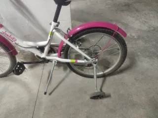 Bicicleta para niña en buen estado. Ideal para edades entre 6 y 10 años (aprox.). - Color lila con detalles florales. - Llantas de 20 pulgadas. - Portaequipajes trasero. - Incluye guardabarros. **Hay que cambiar las cubiertas de las ruedas , están rayadas por no tener uso