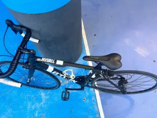 Bicicleta de carretera de la marca Felt modelo F85. - Talla T56 - Cuadro de color negro con detalles azules. - Manillar de carretera con cinta blanca. - Sillín blanco. - Portabidón blanco.