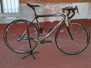 Bicicleta de carbono talla 54 marca. *Dynatek año 2009. *Cambio Campanolo chorus. *Bielas de alumino campanolo. *Plato de carbono Fsa . *Plato grande 52 y plato pequeño 38, *Llantas kasirium de alumino. muy ligera *para puerto de montaña*. En perfecto estado, '*solo hay que cambiar la cinta del manillar por desgaste.'*. puesta a punto, va perfecta. la vendo por no usar .