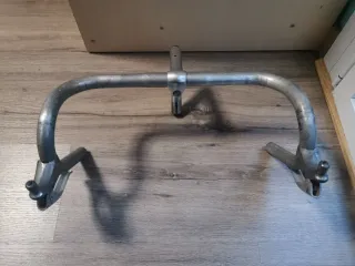 Manillar de bicicleta clásica con acabado cromado. Presenta un diseño curvo y elegante, con manetas de freno integradas. - Material: Metal cromado, con zonas de óxido superficial. - Incluye manetas de freno. - Las fotos son parte de la descripción con las medidas y más detalles. Hago lotes con otros anuncios de mi perfil!