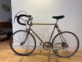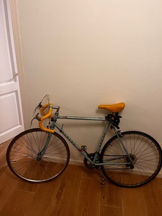 Bicicleta de carreras con un diseño clásico y elegante con su pintura original. Se le han cambiado las ruedas, neumáticos, manillar y manetas de freno para hacerla más cómoda y además mejorar su estética. Tiene marchas las cuales funcionan a la perfección, es talla S (T.42) La entrego con una silla adicional y además un candado de seguridad para su protección.