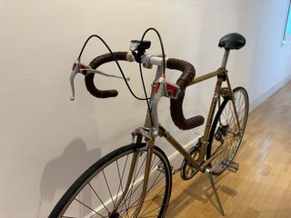 Bicicleta clásica Gazelle Tour d’Italia Champion Mondial. - Cuadro de color dorado edición Champion Mondial - Manillar curvado con cinta cuero marrón. - Piezas Originales
