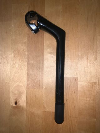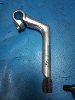 Potencia de manillar de bicicleta clásica, fabricada en aluminio. - Medida de longitud: 80 mm. - Diámetro de tubo de dirección: 22.2 mm.