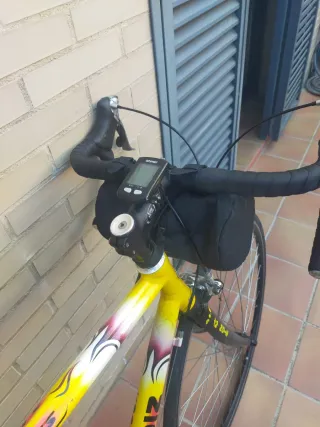 La bici se encuentra en Girona, barrio Montilivi - Palau CP 17003 👉Precio negociable. Bicicleta ligera, rápida y muy cómoda para carretera. Ideal tanto para entrenamientos como para quien busque una bici de calidad con componentes de gama alta. En magnífico estado, muy cuidada y siempre guardada en interior. 🔹 Grupo completo Shimano Ultegra (cambio preciso y fiable) 🔹Ciclocomputador IGPSPORT 🔹 Ruedas 700c (cubiertas nuevas) 🔹 Incluye bolsa delantera y portabidón 🔹 Manillar de carretera con mandos integrados 🔹 Transmisión en excelente estado 🔹Luz trasera 🔹 Estética clásica llamativa en amarillo con detalles rosa y blanc