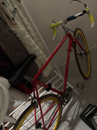 Vendo bicicleta de carretera BH clásica, con pegatina original del ciclista español Gustavo Rupérez. Ha sido restaurada completamente: transmisión, frenos, ruedas y dirección revisados y ajustados. Conserva la cinta original del manillar, que está algo deteriorada, pero he preferido dejarla por su valor original. Tengo una nueva comprada. Tiene marcas en la pintura de uso y paso del tiempo, pero mantiene su color y brillo original. Ideal para amantes del ciclismo vintage o para dar una vuelta por la ciudad. -Cuadro de acero clásico BH -Componentes originales -Lista para rodar