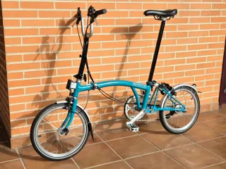 Vendo esta Brompton B75: 6 velocidades. Manillar M. Tija extendida. -Mejorada con: Rueda BWR 6v. Kit cambios 6v. Llanta delantera Superlight original. Pentaclip y sillin Cline. Pedales Cline. Dirección ligera de rodamientos sellados. Puentes freno nuevos. Cubiertas Continental. Sólo en mejoras lleva casi lo que pido por ella. Toda una oportunidad de tener una Brompton estilo clásico pero nueva. Te aseguro que no vas a encontrar otra en mejor estado y tan cuidada. Este modelo no se vendió en España, solo en UK. Gracias por leer todo. Saludos.