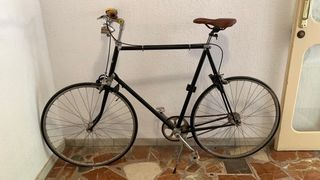 Bicicleta Clásica negra talla 56. Cuadro fabricado en Cromoly. Cambio SRAM i-Motion 9 vel de bajo mantenimiento. Sillín Brooks Cuero. Neumático Schwalbe. Radios doble grosor. Manillar Roadster. Fabricada para durar toda la vida. Regalo maleta Brooks de cuero grande para parrilla, juego de herramientas Brooks empacada en cuero y casco plegable Brooks nuevo.