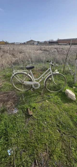 Bicicleta de estilo clásico en color blanco. Ideal para paseos tranquilos. - Cuadro de bicicleta. - Ruedas de bicicleta. - Sillín de bicicleta. - Manillar de bicicleta.