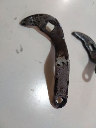 Par de levas (balancines tiradores) para bicicleta de varillas clásica. Óxido neutralizado con convertidor y barnizadas. Proceden de Orbea, válido para DAL. GAC, Torrot, Orbea, BH, Invicta, Cil, Supercil, Dal, Mercier, Peugeot, Zeus, Razesa, Derbi Rabasa, Raleigh, NSU, Gimson, Iberia, Motobecane, Orbita, Mobylette...